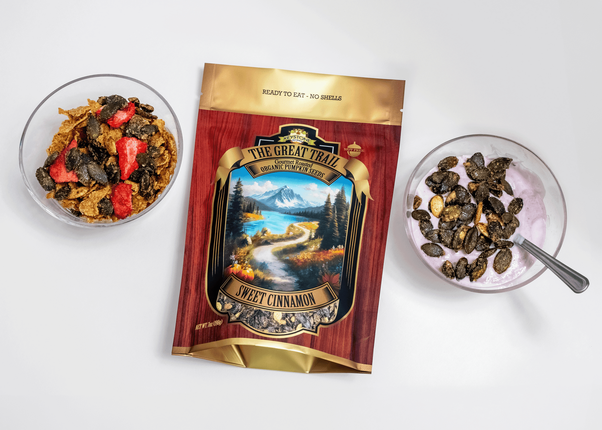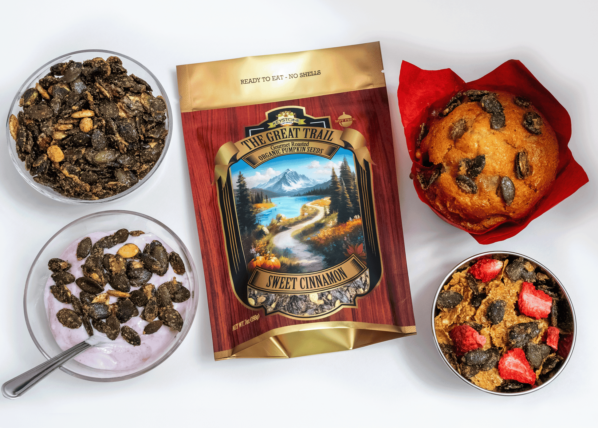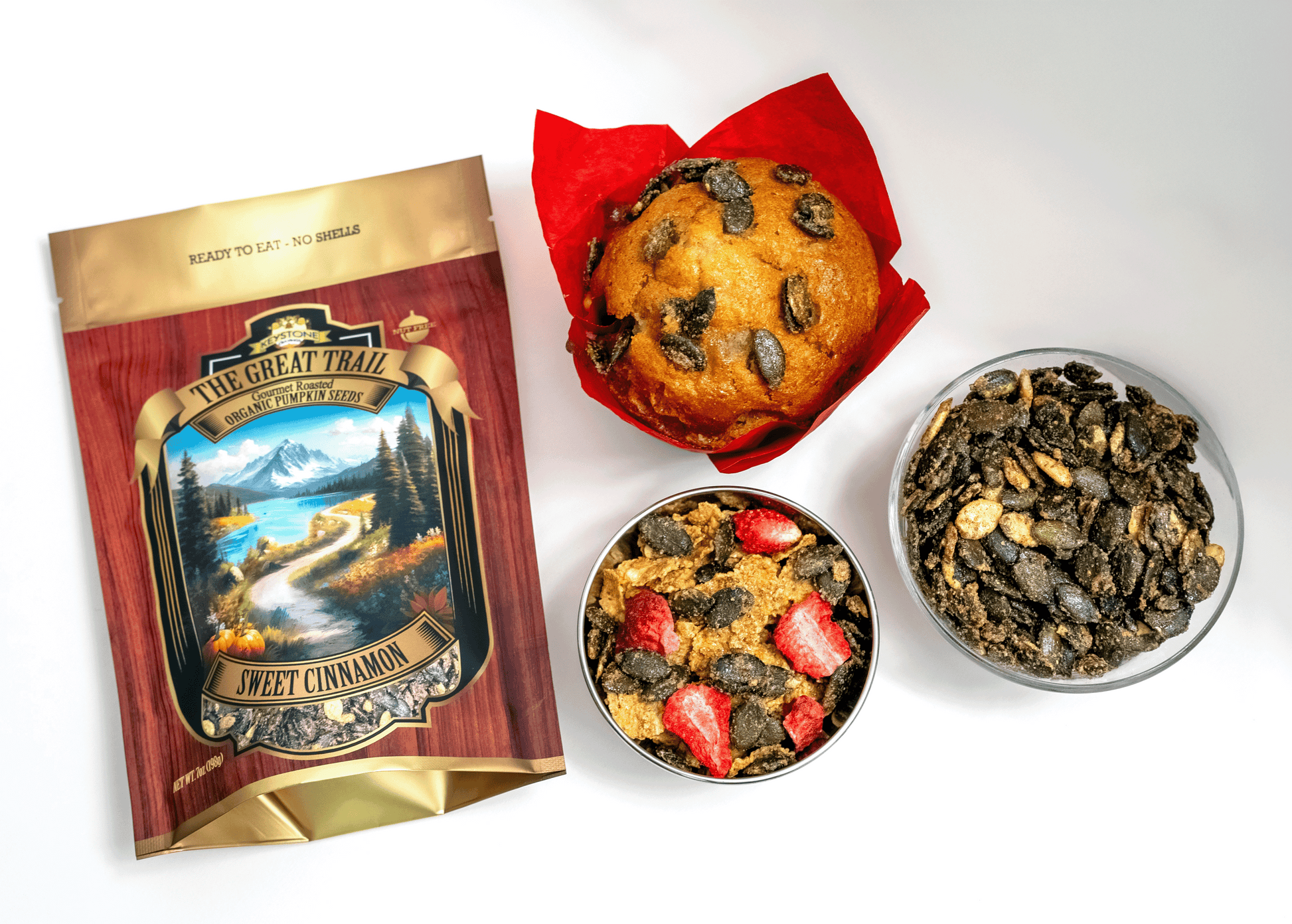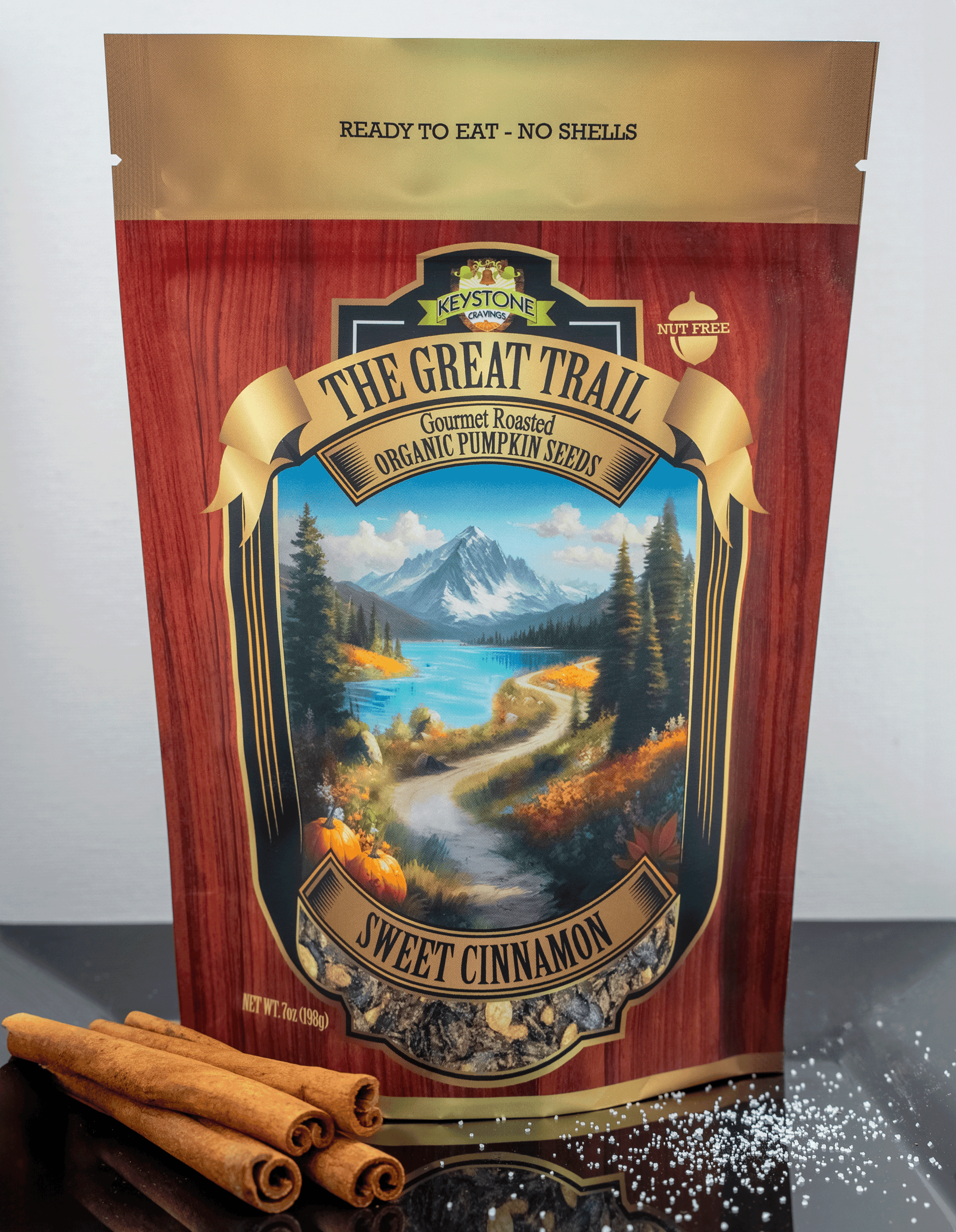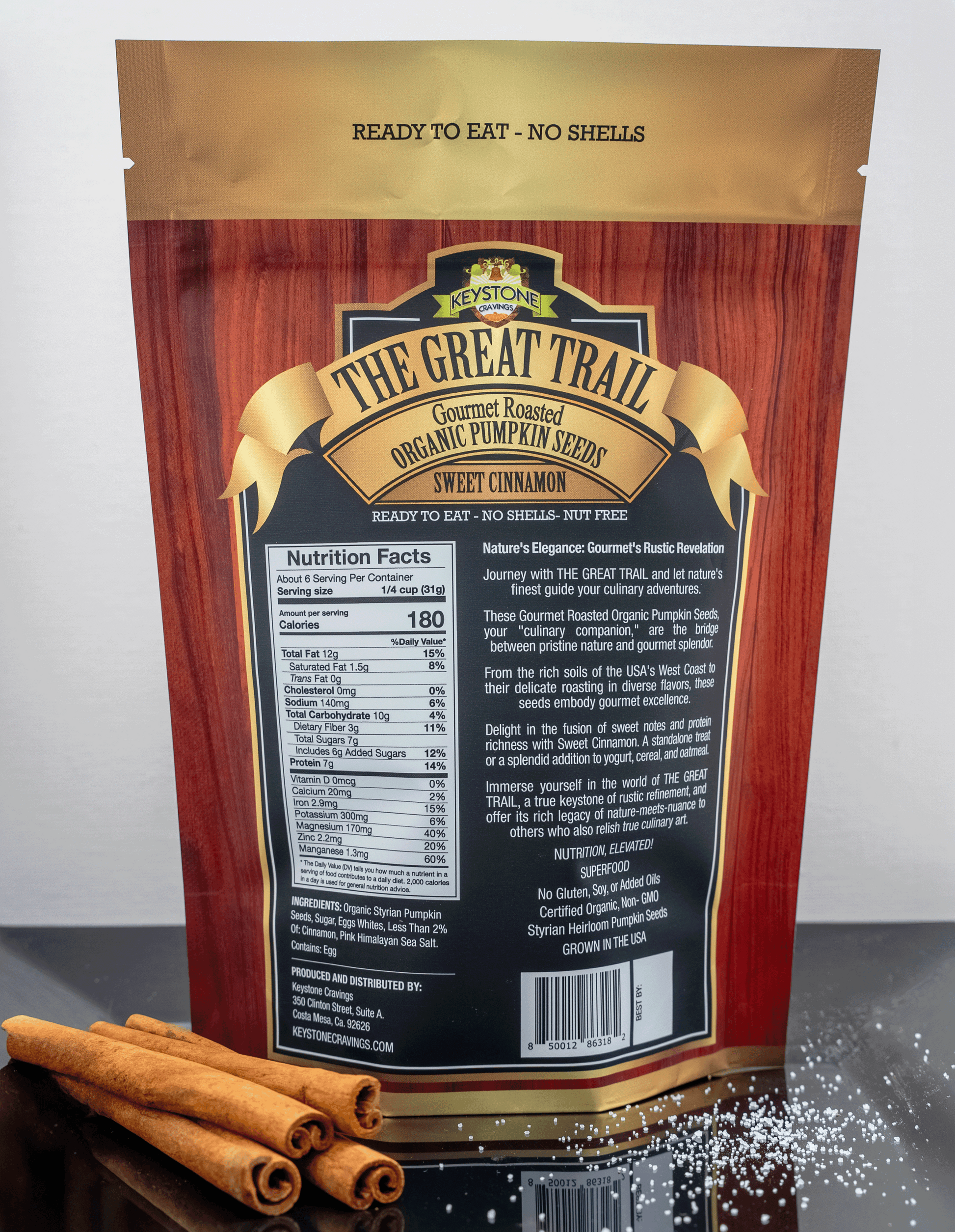 THE GREAT TRAIL Organic Pumpkin Seeds - SWEET CINNAMON 7 oz - Plant-Based Blend